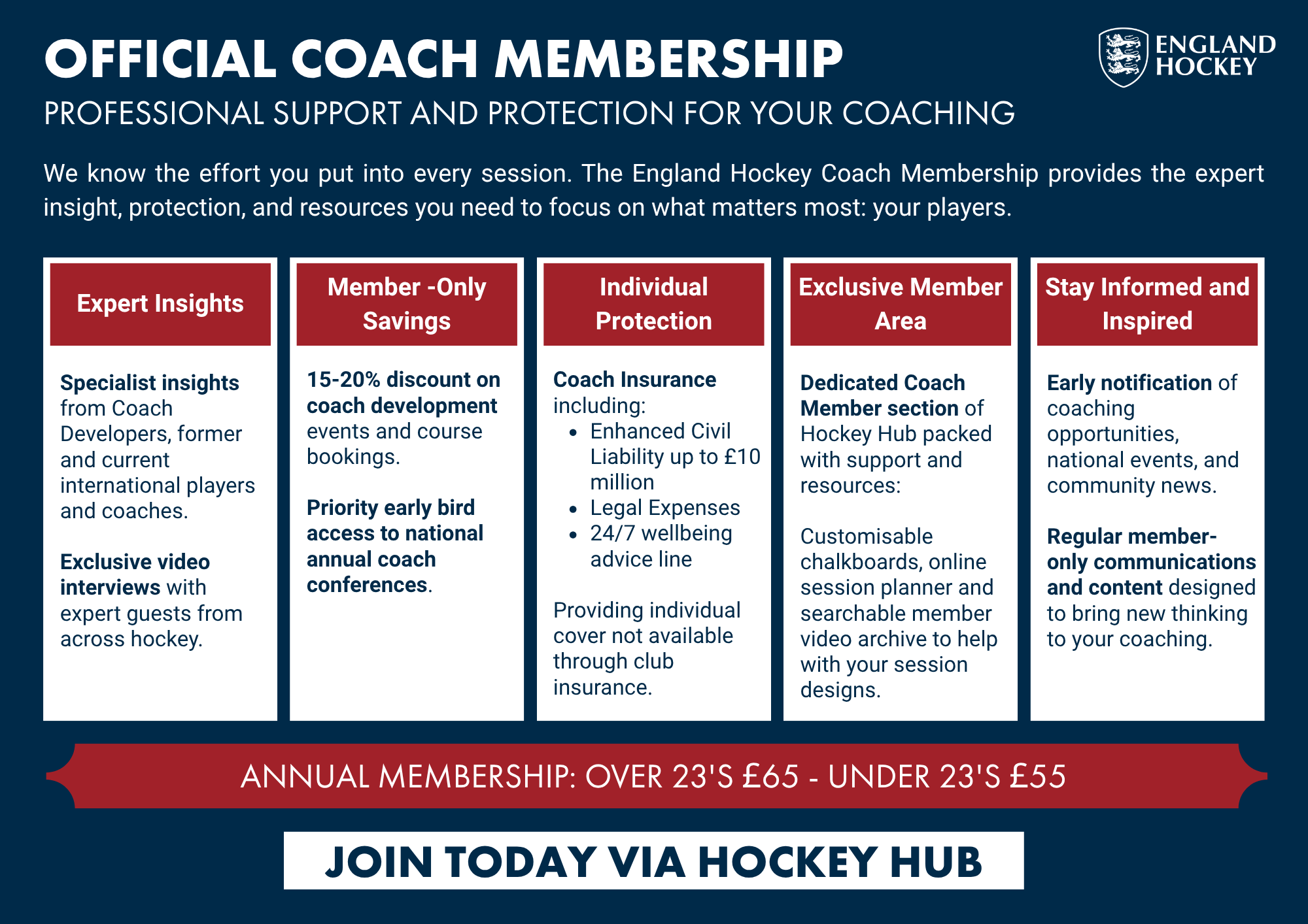 England Hockey’s Coaches' Membership provides coaches with the essential tools and resources to support coaching delivery and inspire more, better and happier players.