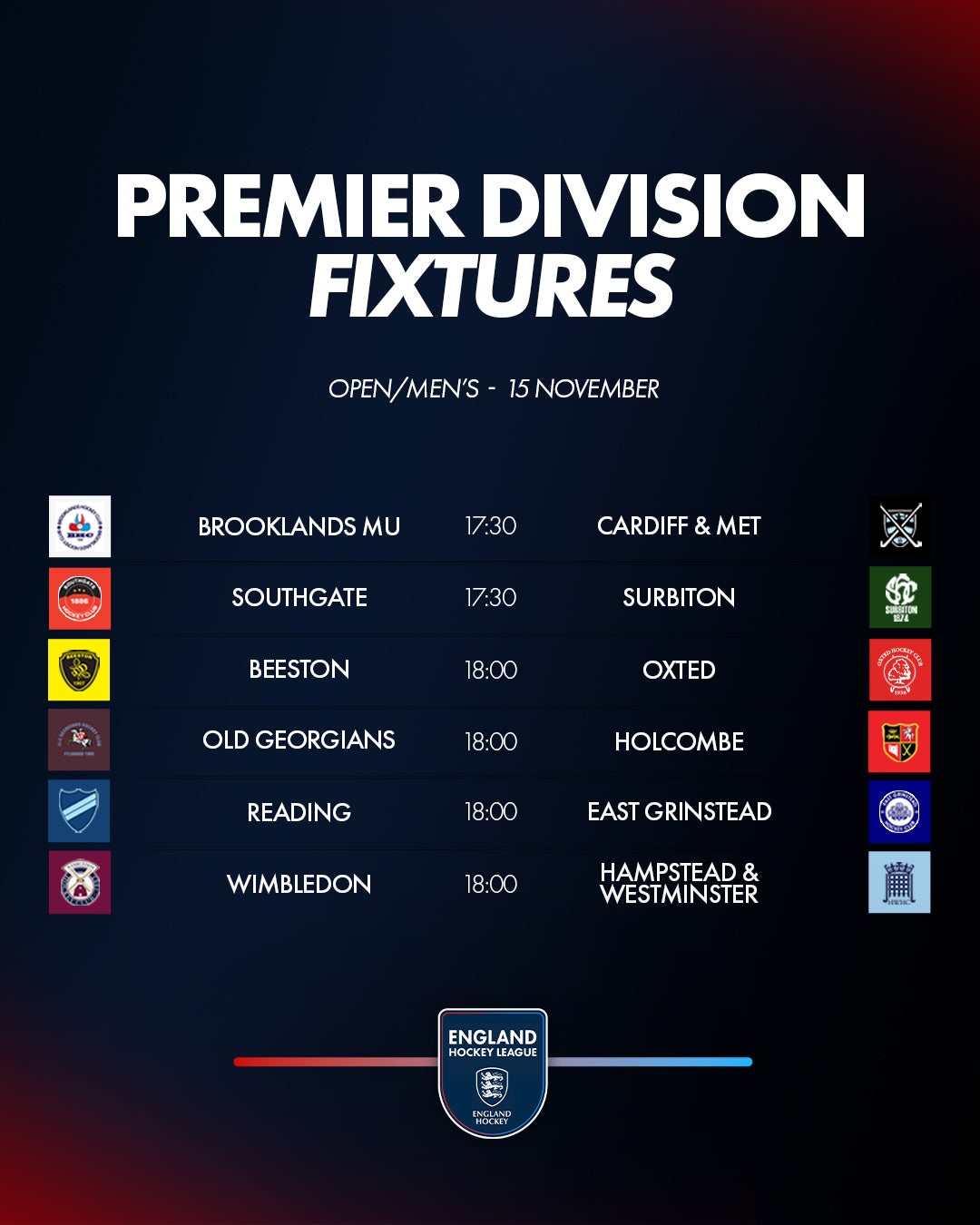 Wimbledon, who now trail Surbiton by five points in second, host Hampstead & Westminster who are two points further back in third. Hampstead are unbeaten in seven and are hoping to break Wimbledon's win streak against them after the hosts came out winners in their three meetings last season.