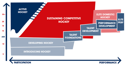 - PERFORMANCE DEVELOPMENT An environment that keeps the potential international athlete of the future in mind, with the aim of providing high quality experiences and satisfaction through accomplishment. At this level, players will have a clear line of sight to senior international hockey, through U21 and other age group competitions, and potential early exposure to senior international hockey itself.